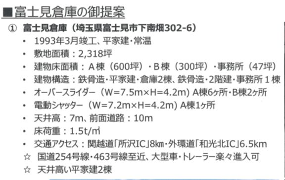 倉庫所在地 | 〒3540004 埼玉県 富士見市 南畑302-6 |